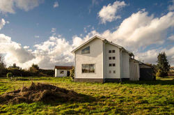Construcción en 2 plantas de madera sobre radier , 4 habitaciones, 4 baños, hall de entrada, loggia, bodega, salita.